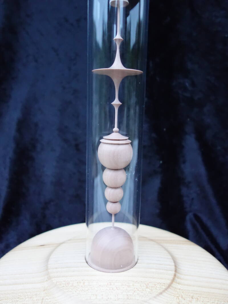 Zuallerletzt muss ich noch eine nicht-technische, aber durchaus bemerkenswerte Schwierigkeit erwähnen: Die Schönheit des ganzen Fadens. Es genügt nicht, eine technische Schwierigkeit an die andere zu reihen. Wenn ein Faden unproportioniert und unharmonisch wirkt und die Figuren schwunglos und nicht aufeinander abgestimmt sind, wird sich die Begeisterung eines Betrachters in Grenzen halten. Es ist daher sehr sinnvoll auch in die ästhetische Gestaltung der Drechselei besondere Anstrengung zu investieren.
