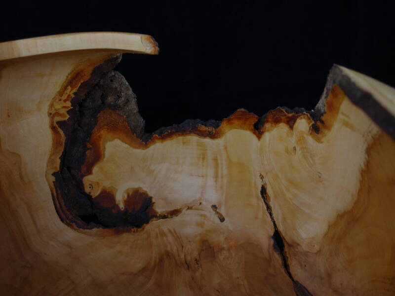 ... wenn an dieser Stelle noch mehr weggedrechselt wird, öffnet sich der morsche Kern und das Gefäß bekäme eine komplett offene Seite; das wäre sehr instabil und würde wohl auch nicht gut aussehen ...