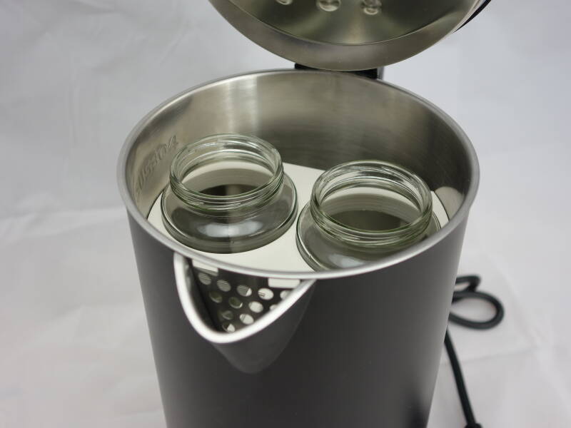 ... geleimt wurde mit Heißleim, der in diesem Leimtopf bereitet wurde (in einem anderen Einblick beschrieben):